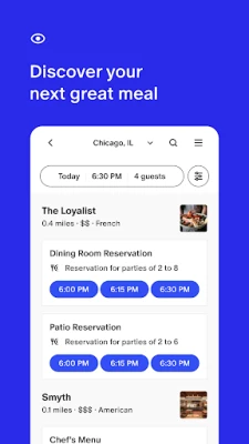DISCOVER, BOOK, & MANAGE RESERVATIONS • Discover and book unique culinary experiences. • Easily manage reservations anytime, anywhere. • Join waitlists for highly coveted tables and times.